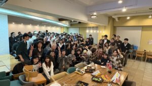 ショートトリップ以外にも、4月末には留学生交流サークル「Truss」と合同でウェルカムパーティーを開催しました。100人以上の留学生や神戸大学生が参加し、フリートークやゲームを通して大いに盛り上がりました。